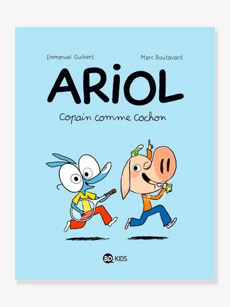 C’est facile : Ariol, c’est l’âne et Ramono, c’est le cochon.L’un est bleu avec des longues oreilles et des grosses lunettes. L’autre est rose avec le groin comme une prise électrique. On ne peut pas dire qu’ils se ressemblent, mais ils sont copains. Tellement copains que parfois, le cochon fait des âneries et l’âne des cochonneries. Et là, on ne sait plus qui est qui !
