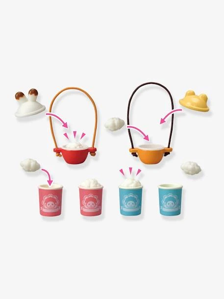 Ce set contient la maman mouton dans une tenue exclusive, un tricycle et un stand de popcorn ambulant. La poignĂ©e de la machine Ă popcorn tourne pour faire rebondir le popcorn de haut en bas.Â
