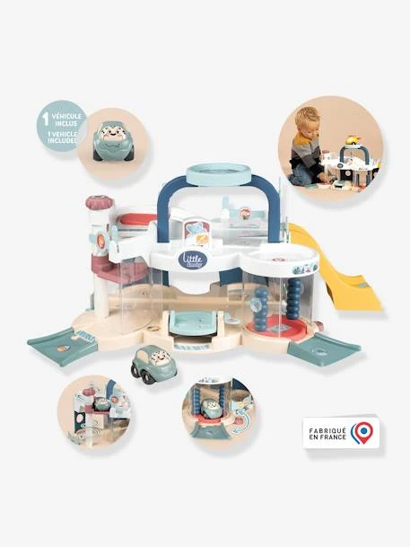 Avec ce garage Little Smoby votre enfant pourra s’amuser aux petites voitures dès son plus jeune âge ! Le garage comprend de nombreuses activités adaptées aux plus petits : ascenseur avec poignée magique permettant à la voiture de redescendre toute seule, station de lavage avec rouleaux, pont de réparation, héliport, rampe pouvant se clipper à plusieurs endroits, bascule de lancement, pompe à essence…