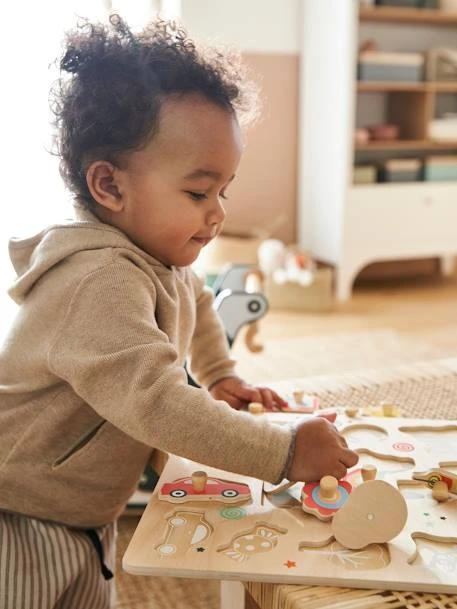 De gros boutons pour aider les petits doigts à attraper les pièces plus facilement et d’adorables pièces illustrées à encastrer pour développer leur motricité fine !